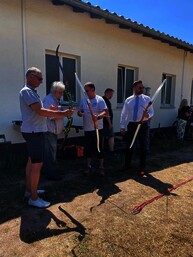 Am 5. Juli war es soweit, die erste Stunde Bogenschießen fand bei gutem Sommerwetter in der Kellergrube statt. Die Trainer Berthold Schütz und Martin Allendorf konnten in Ihrer ersten Stunde eine gemischte Gruppe aus Anfängern und Fortgeschrittenen begrüßen. Während die erfahreneren Schützen bereits erste Übungen an einem 15m entfernten Ziel vornahmen, erklärten die beiden Trainer den Anfängern in aller Ruhe erstmal die Grundlagen, wie die Erfassung des dominaten Auges, um zu wissen, ob man einen rechts- oder linkshänder Bogen braucht, die richtige Körperhaltung und Atemtechnik, sowie die benötigte Pfeillänge. Mehr…